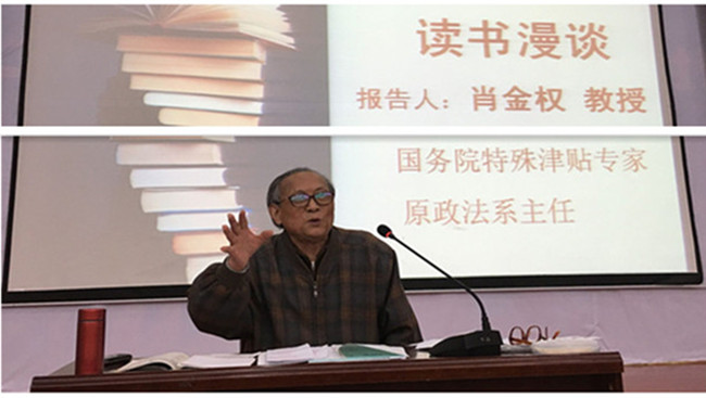 3月9日晚,威廉希尔国务院特殊津贴专家、原政法系主任肖金权教授应邀在千人报告厅为公司大一大二员工做了一场主题为《读书漫谈》的报告会。