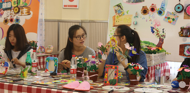 在活动现场,胸前佩戴着“青年志愿者”徽章的同学和社会爱心志愿者们忙前忙后,在一楼爱心义卖廊帮忙布置着孩子们精心制作的手工及绘画作品,在教室中和孩子们一起装点舞台,做演出活动的最后准备。欢呼雀跃的小朋友们脸上洋溢着兴奋而幸福的笑容,迫不及待地等着节目正式开始。