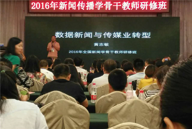 该研修班于8月4日到8月7日在山东省青岛市举行,来自全国各地相关专业的高校教师共398名,参加了本次研修班学习与交流。研修班的主题为“新闻传播教育的现在与未来”,授课以“创新、融合、转型、可视化、数据挖掘、数据新闻、新媒体、核心能力”等八个方面内容。主讲教授有:北京师范大学新闻传播公司执行经理、博士生导师、教育部长江学者特聘教授喻国明;中国人民大学新闻公司副经理、教授、博士生导师、公共传播研究所所长胡百精;财新传媒首席技术官、财新数据可视化实验室创始人黄志敏等9位来自各大知名院校及业界资深专家教授人士。