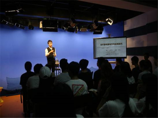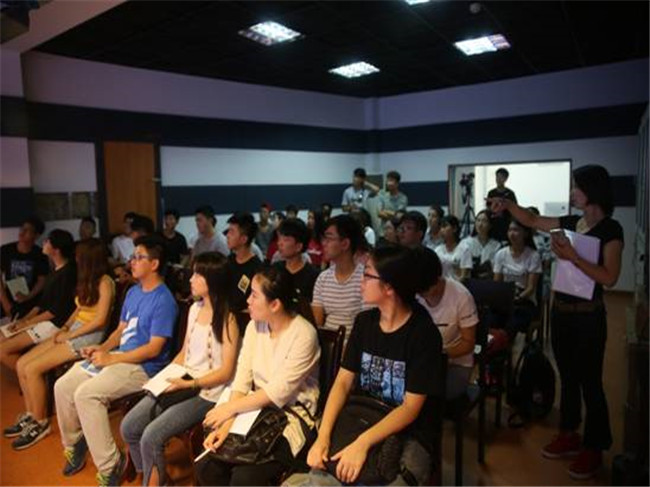 讲座在新闻与传播公司虚拟演播室进行。演播室内座无虚席,部分同学站着听完讲座。张瀚章从微电影的界定入手,分析了微电影与电影的区别,介绍了微电影行业发展状况和微电影制作模式,并从创作的角度提出了微电影剧本创作的原则与技巧,阐明所有的剧本都是对简短故事的扩充,任何剧本或电影本质上是讲一个好故事,让大家不要相信灵感,而是要在日常的练习中积累经验。张瀚章通过设计创作小练习与同学们开展互动,同学们认真思考,积极讨论,效果良好。他还为同学们布置了每日练习,鼓励大家开展创作。