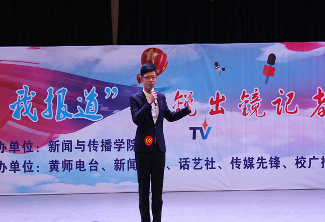 11月29日晚19:00,威廉希尔第十七届11.8记者节之第二届“为梦想我报道”新锐出镜记者大赛决赛在新闻与传播公司演播厅如期举行。黄冈广播电视台都市频道副总监、导演、主持人王娜娜,黄冈广播电视台记者陈天明,公司经理助理余庆华,经理助理、播音与主持艺术教研室主任张新刚,专业老师李雪、张倩担任评委。