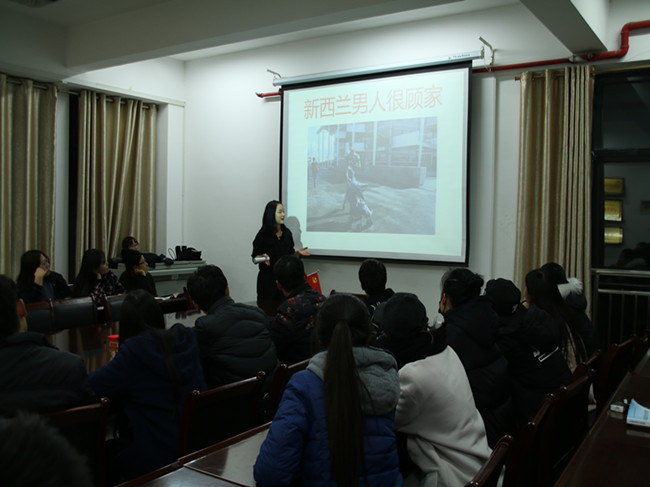 报告由“新西兰的交流、美国的交流、大学的理财、大学的比赛”四部分组成。胡宛晴首先介绍了自己游学新西兰、美国的经历,从当地风土人情、学习、生活、回国感想等方面与大家展开交流。新西兰美丽的风景、奇妙的异域文化,美国高校的有趣见闻等,引起了大家的极大的兴趣。