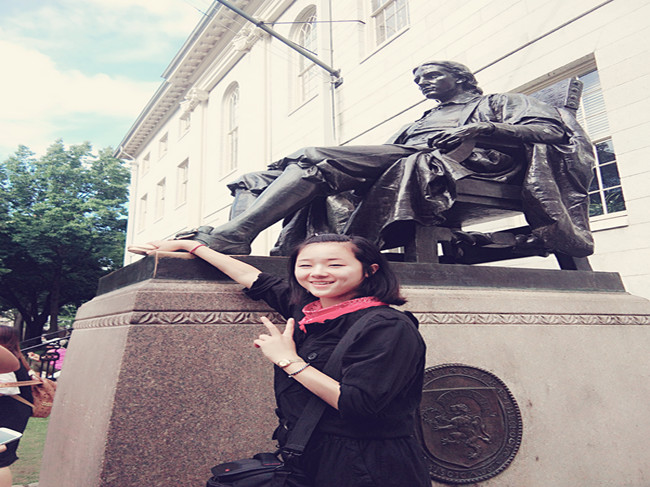 美国游学与哈佛John Harvaed雕像纪念留影