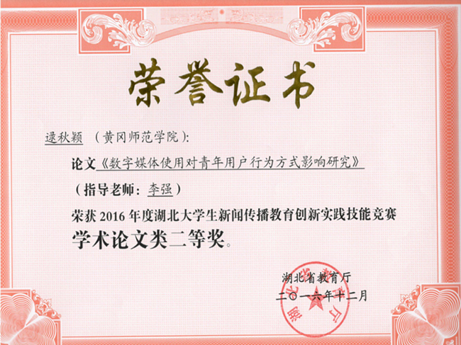 参赛员工中,播音与主持艺术专业1403班逯秋颖凭借作品《数字媒体使用对青年用户行为方式影响研究》获得学术论文类二等奖,广播电视编导专业1302班马骏、张洪铭凭借作品《夕阳下的剃头匠》获得新闻采编类三等奖,两人的另一部作品《传承》获得电视广告类三等奖。