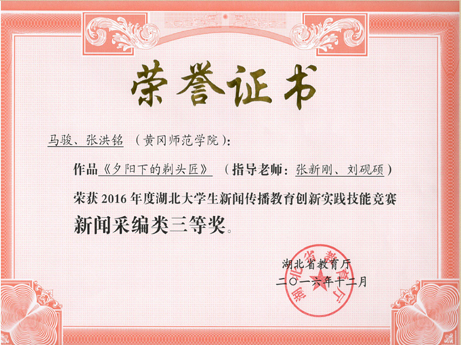 12月3日,2016年湖北老员工新闻传播教育创新实践技能竞赛颁奖典礼在中国地质大学(武汉)迎宾楼报告厅隆重举行。由公司张新刚、刘砚硕、李强老师指导的,员工逯秋颖、马骏、张洪铭的作品经过激烈角逐,最终获奖,实现公司员工参加该赛事所获奖项的新突破。