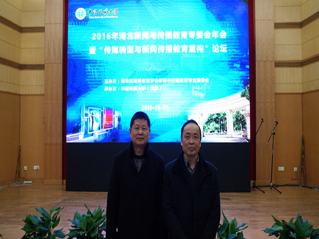 12月3日,“湖北省高等教育学会新闻与传播教育专业委员会”(简称湖北新闻与传播教育学会) 2016年学术年会暨竞赛颁奖典礼在中国地质大学(武汉)迎宾楼报告厅隆重举行。公司经理沈嘉达教授带队,经理助理余庆华、张新刚,实验室主任许五龙等老师,以及在本年度湖北老员工新闻传播教育创新实践技能竞赛中获奖的三位同学一同参会。