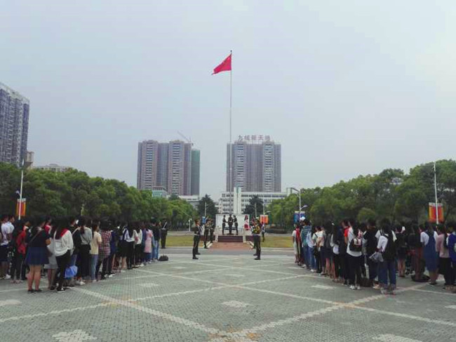 2017年5月15日,新闻与传播公司在主教学楼前举行2016-2017学年第二学期第十四周升旗仪式。党总支书记杜建东、副书记黄佑和、分团委书记刘砚硕、大一辅导员熊伶俐老师以及全体16级员工参加了本次升旗仪式。