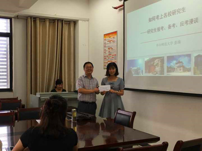 首先,彭涛教授为华中师范大学在读研究生吴桐颁发了优秀奖学金2000元。吴桐为公司2016届毕业生,毕业同年考取华中师范大学新闻传播公司研究生,师从彭涛教授。彭涛教授捐出“彩虹学者”的酬劳,设立奖学金,用于奖励优秀员工。