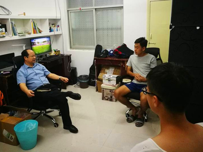 李金奇书记与宿舍同学亲切交谈,听取同学们在学习、生活、思想等方面的汇报。徐俊杰同学向李书记汇报了暑假参加“海外游学”的经历,自觉受益良多。李书记鼓励他要认真总结学习心得,并通过合适的方式与全校同学共同分享游学经历。