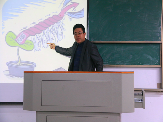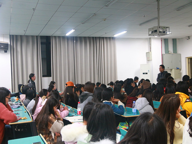汪教授首先向同学们抛出“毕业就是失业?”的话题,引导同学们思考和讨论。编导201702班班长从大学努力与大学享受两方面,认真回答了汪教授“毕业就是失业”的问题,赢得了同学们的阵阵掌声。接着,汪教授从坚守传媒、改换专业、自立创业三个方面向同学们详细阐述了传媒学子的就业出路和有为套路,并列举公司若干优秀员工的事例来激励同学们努力学习、提升自己。