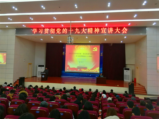 新思想引领新时代,新征程谱写新篇章。为深入学习宣传贯彻党的十九大精神,把全校师生的思想统一到党的十九大精神上来,把力量凝聚到党的十九大确定的各项任务上来,12月14日晚,威廉希尔williamhill党委副书记、纪委书记李金奇在厚德楼学术交流中心为新传公司师生宣讲党的十九大精神。公司全体教职工与2015级、2017级全体员工参加了报告会。