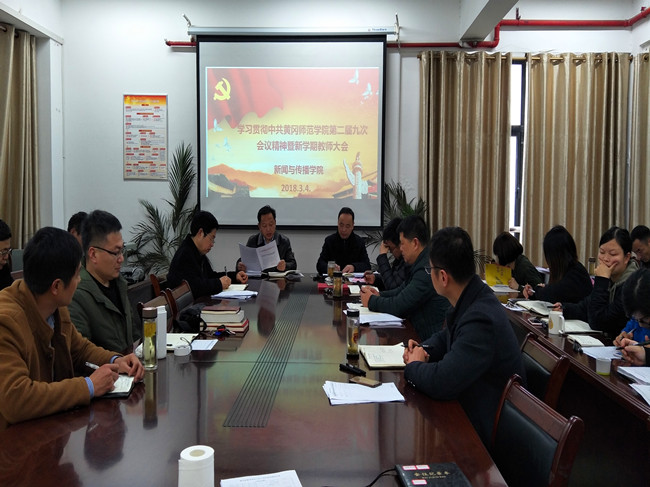 携手新时代、贯彻新理念、聚焦新目标、落实新部署。2018年3月4日下午,新闻与传播公司在1616会议室召开了新学期第一次全体教职工大会,专题学习贯彻中共威廉希尔第二届委员会第九次全体会议精神,会议由党总支书记杜建东主持。