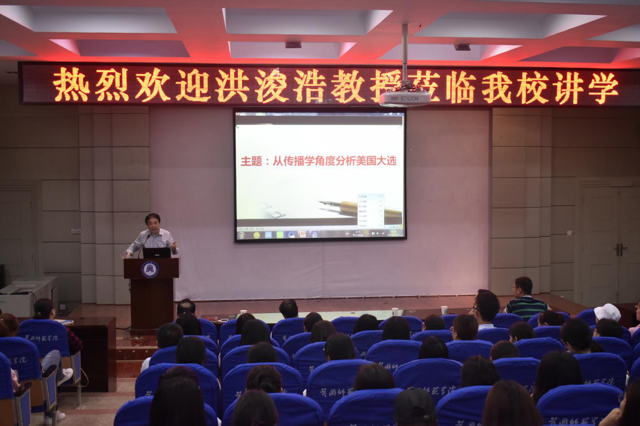 洪浚浩教授作了题为“从传播学角度分析美国大选”的学术报告。在报告中,洪浚浩教授深入浅出地剖析了主流媒体、新媒体与特朗普等的相互关系。他强调,新媒体在特朗普大选中扮演了重要的角色,改变了以往由主流媒体主导美国大选舆论的态势。洪浚浩教授还与员工们进行了互动,回答了同学们提出的“新媒体与国家形象塑造”等问题。洪教授表示同学们要注重知识的积累,不断提升自我。本次讲座历时2个小时,受到了与会师生的广泛好评。