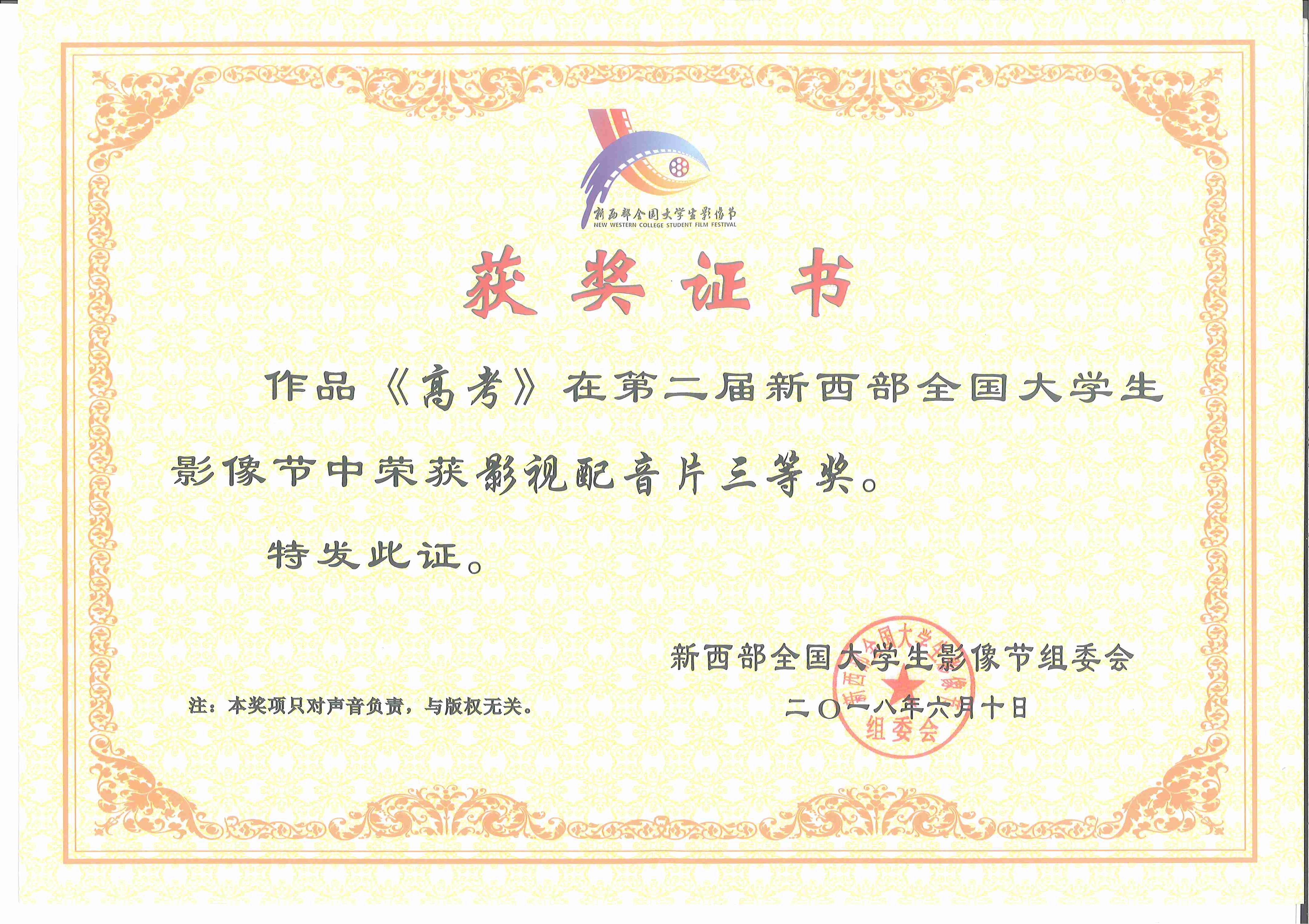 新传学子在第二届“新西部”全国老员工影像节中获佳绩