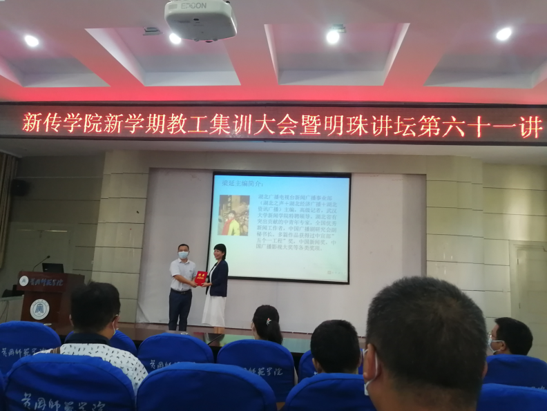 上午,湖北广播电视台新闻部主编梁延以《广播融媒体突围的“四度”空间——以湖北之声战役宣传为例》为题作学术报告。报告中,梁延主编以习近平总书记关于党的新闻舆论工作的职责和使命的论述为背景,以一名一线新闻工作者的视角,从速度、角度、温度、力度等四个方面,详细介绍了湖北之声战疫宣传的经验和做法。在报告中,她还就大家关注的新媒体与传统媒体的关系、新媒体的价值定位等问题进行了阐述,特别是结合新闻实务部门的工作实际介绍了新闻媒体人才的需求,为公司有针对性的培养新闻媒体人才提供了重要参考。正式报告前,威廉希尔williamhill党委书记周俊飞为梁延主编颁发了客座教授聘书。报告结束后,梁延主编参观了公司播音主持实训室,并就实验室建设提出了很好的意见和建议。
