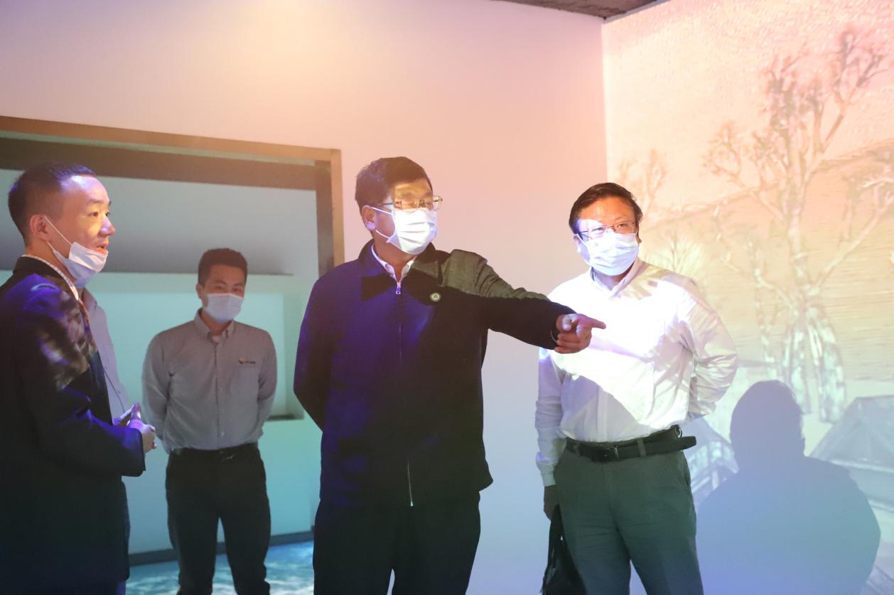 王立兵一行参观了武汉新视角光电科技有限公司企业展厅,听取了视美乐科技股份有限公司董事刘聪,武汉新视角光电科技有限公司董事、几望(武汉)文化科技有限公司董事长、公司教师方拥军关于三家企业情况以及校企合作成绩的介绍。