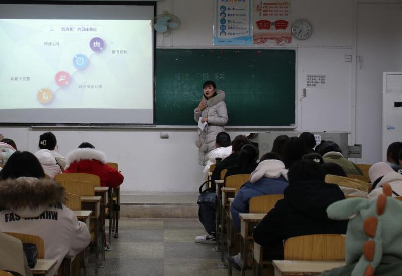 (通讯员:李灿 于煜)12月9日晚,丁敏玲博士做客明珠讲坛,在博学楼420教室和同学们一起解读“新媒体时代的‘后真相’”现象,向同学们普及“后真相”的相关知识。播音2002—2004班同学聆听了本次讲座。