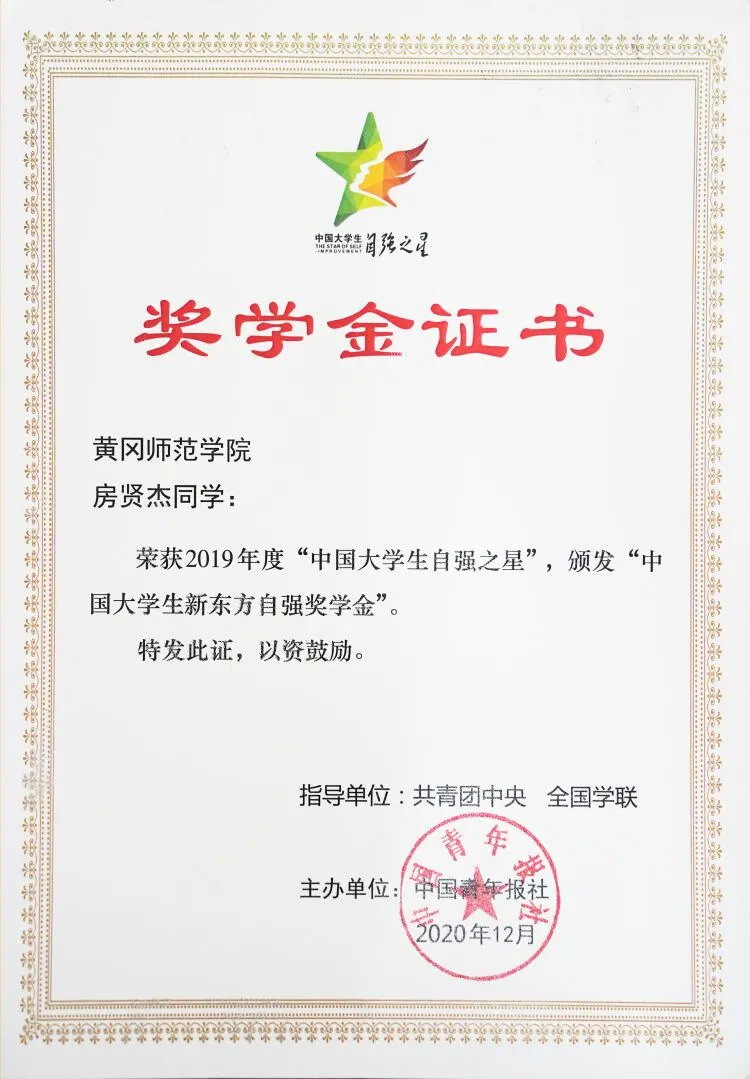 行大道生息不止 担重任方守始 ——2020年度“魅力学子”房贤杰事迹