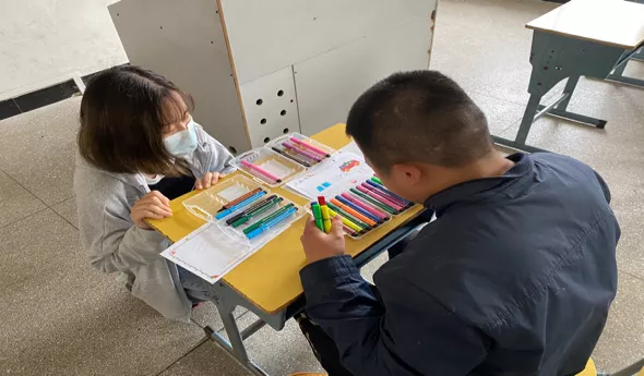 挥舞画笔,勾勒世界。在游戏组志愿者耐心细致的教导下,乖巧安静的孩子们很快投入到了图画里的世界。他们用彩色的画笔勾勒出属于他们的创作天地,用奇思妙想打破色彩的限制,描绘出了一个个色彩缤纷的奇幻世界。在教学过程中,志愿者从孩子们的眼神中看到了对绘画创作的热爱和向往,而这份热爱也终将化为团队开展志愿服务源源不断的动力。