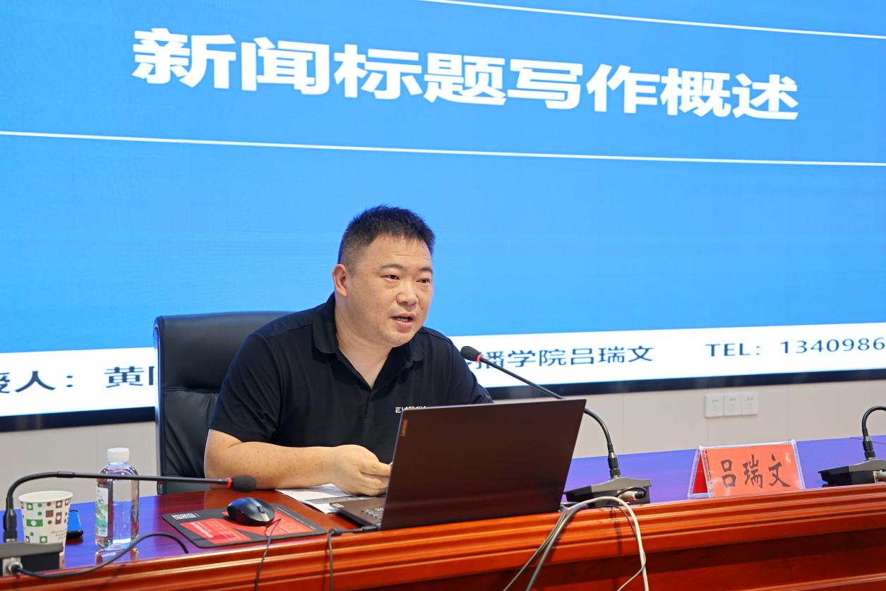 讲座中,吕瑞文首先从传播学角度讲解受众的感知、阅读和解码,解释新闻标题之所以重要的理论依据。接着,他围绕“新闻标题的概念与历史流变、新闻标题失范的类型及危害、新闻标题的写作规范和要领和网络新闻标题的发展与未来”四个层面逐一讲授。吕瑞文以自己发表的多篇稿件为例,结合学界科研前沿,深入浅出地讲解该如何写好新闻标题。生动的“课堂”与满满的“干货”引爆大家的学习劲头,参训人员们专心听、认真学,现场学习气氛浓厚。