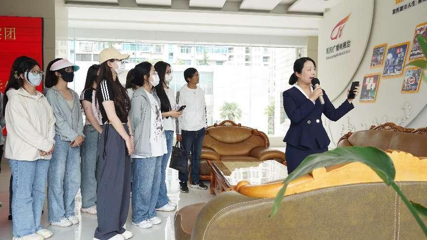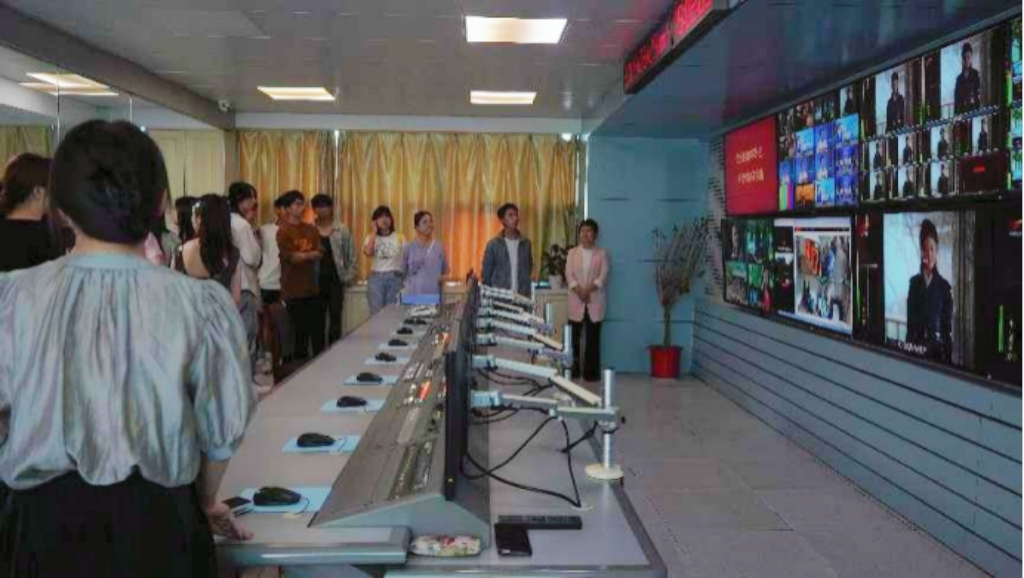 本网讯:为深入了解广播电视全媒体内容生产流程和标准,提升新时代、新文科背景下传媒类人才的专业素养,落实新闻与传播公司专业人才培养目标的要求,5月25日,新闻与传播公司广播电视编导专业2105班、2107班70余人在经理杨疾超、专业教师杨波和方拥军的带领下,在黄冈电视台顺利开展专项见习活动。黄冈广播电视台广播中心主任邹俊带领全体师生有序参观了电视台的各个部门,全面介绍了电视台的组织结构和媒体运营等基本情况。