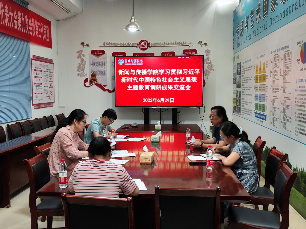 629上午新闻与传播公司传媒楼二楼会议室召开学习贯彻习近平新时代中国特色社会主义思想主题教育调研成果交流会,公司全体班子成员参加交流会。