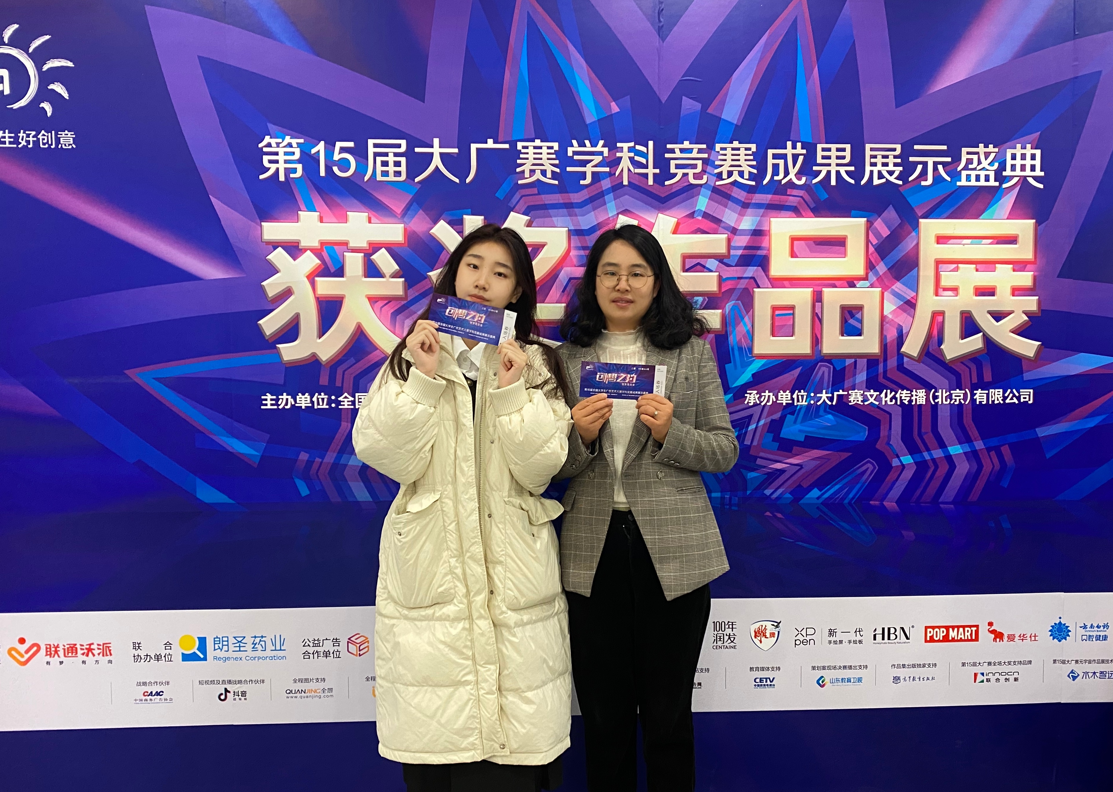 2023年11月25日,第15届全国老员工广告艺术大赛(简称“大广赛”)学科竞赛成果展示盛典在中国传媒大学重大楼礼堂举行。全国1800多个院校1500余名代表参加了此次盛典。公司教师黄秋月、员工李芙媛参加了此次盛典。