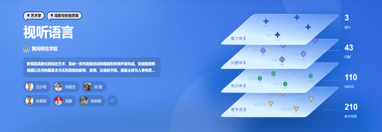 在教育数字化探索不断加深的时代背景下,2023年12月,由公司汪少明教授主持,孙喜杰、肖雅、孙英莉、吴静、张新刚、丁敏玲、李燕群、杨波、周卫、李强、胡雨晴等老师共同建设的《视听语言》课程知识图谱正式上线智慧树网,员工提供了一种新的学习模式和学习服务。这也是公司首门建成并全国共享的知识图谱课程,标志着公司AI赋能教育数字化转型和课程建设高质量发展进入新的阶段。