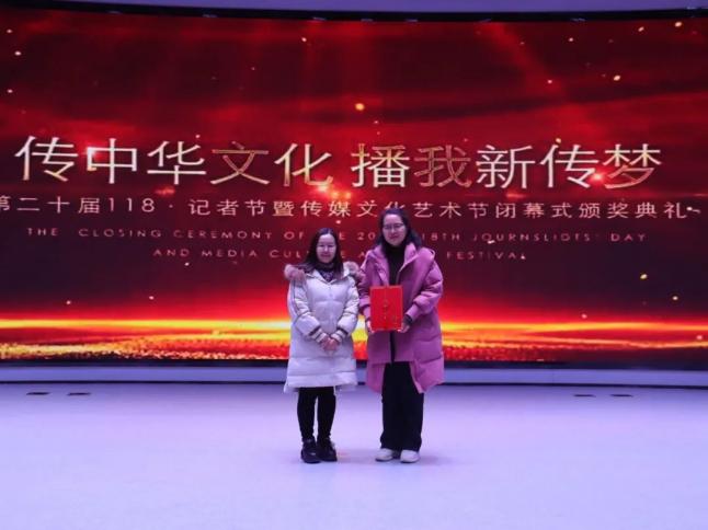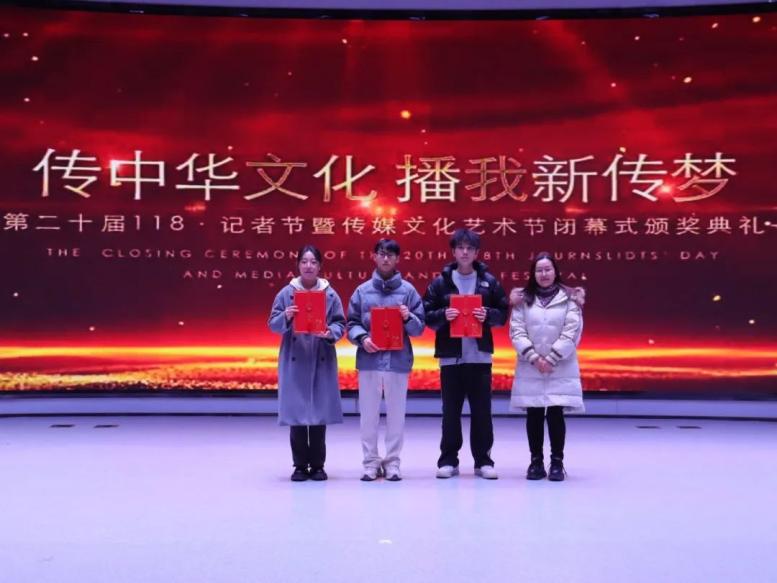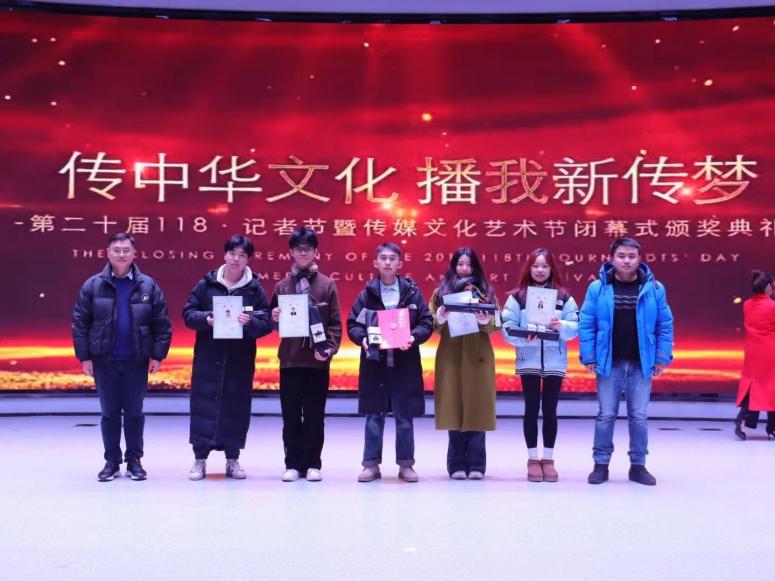 副经理孙喜杰,专业老师黄秋月为优秀摄影作品获奖者颁奖;副经理张新刚,专业老师李雪、吴静为第九届新锐出镜记者大赛获奖者颁奖;经理助理丁敏玲,专业教师杨波、范睿一为优秀影音作品获奖者颁奖。