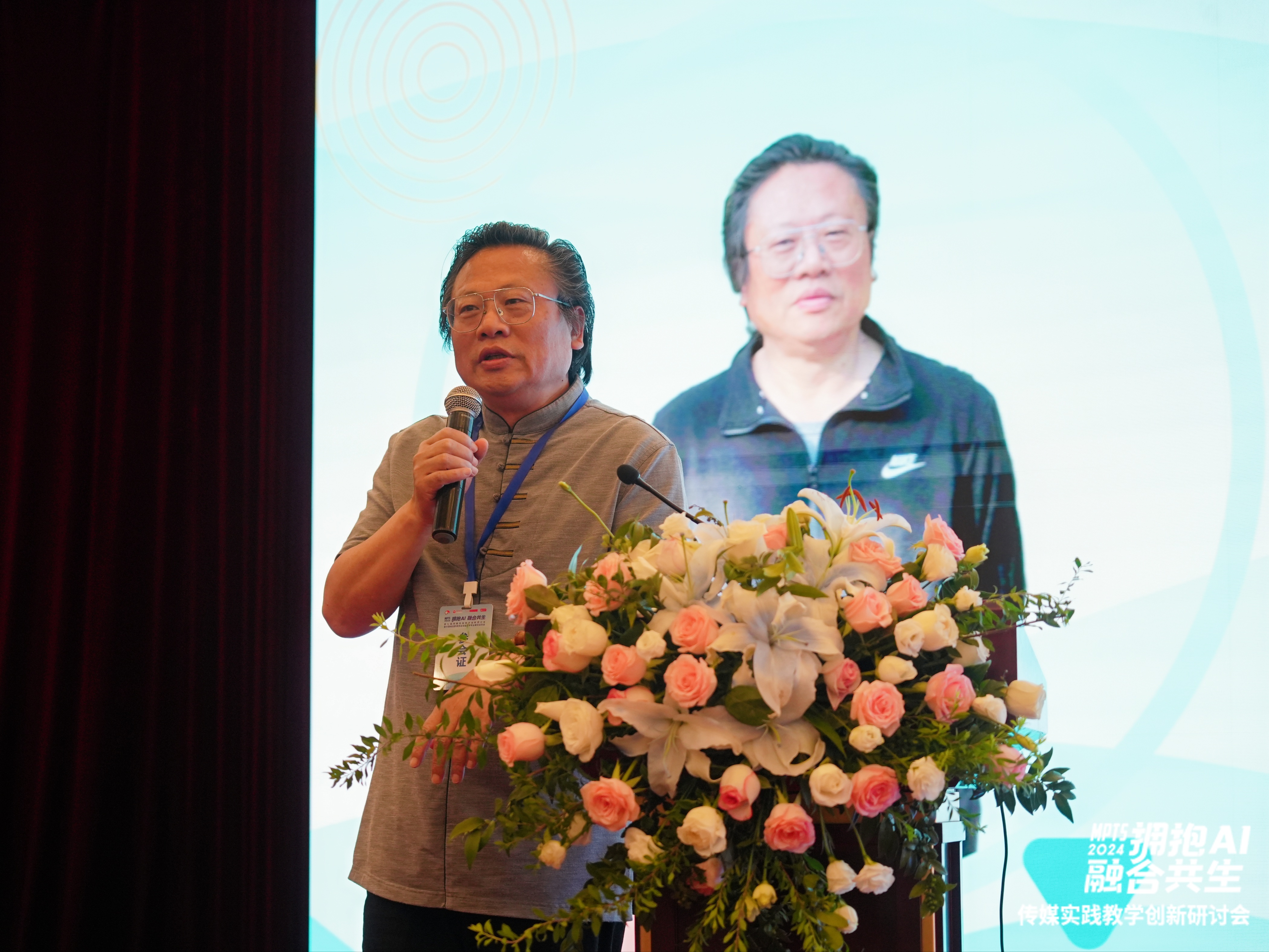 在主题报告会上,中国高校影视学会学术委员会主任、北京师范大学艺术与传媒公司胡智锋教授,浙江传媒公司党委副书记、副董事长(主持行政工作)韦路教授,中国高校影视学会实验教学专业委员会主任、浙江传媒公司副董事长姚争教授先后作了精彩的主题发言。随后,华栖云、英特尔、西南政法大学新闻传播公司、北京中科大洋科技股份公司、重庆大学新闻公司、北京师范大学艺术与传媒公司、佳能(中国)有限公司、北京强氧新科信息技术有限公司、北京大学新闻与传播公司数字传播教学实验中心、艾迪普科技股份有限公司等等围绕高校传媒AIGC创新、大视听实践教学、AI教学实践等来自学界、业界的十三位嘉宾进行了主题发言和分享。