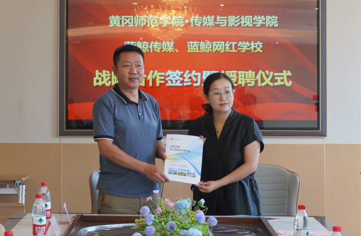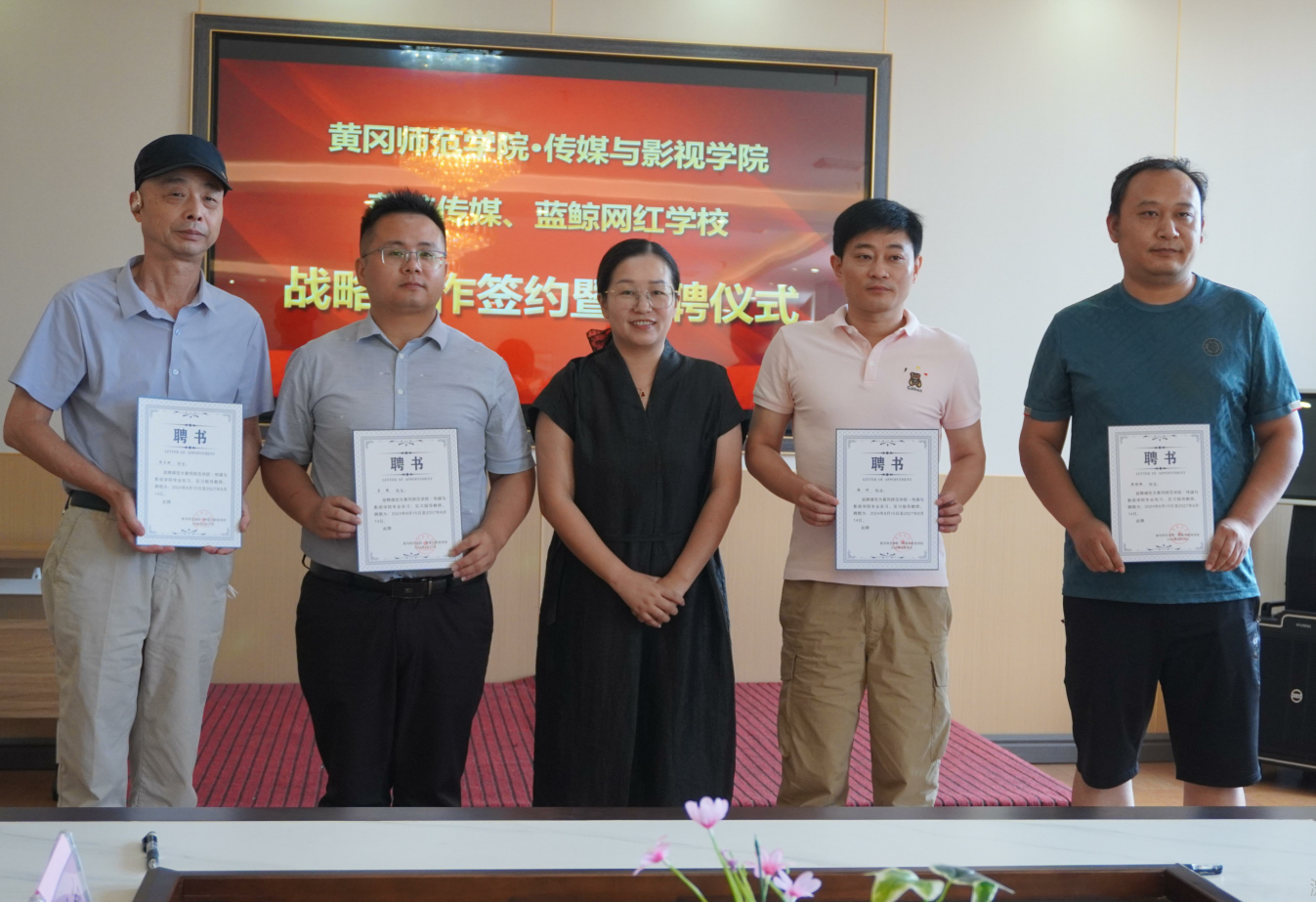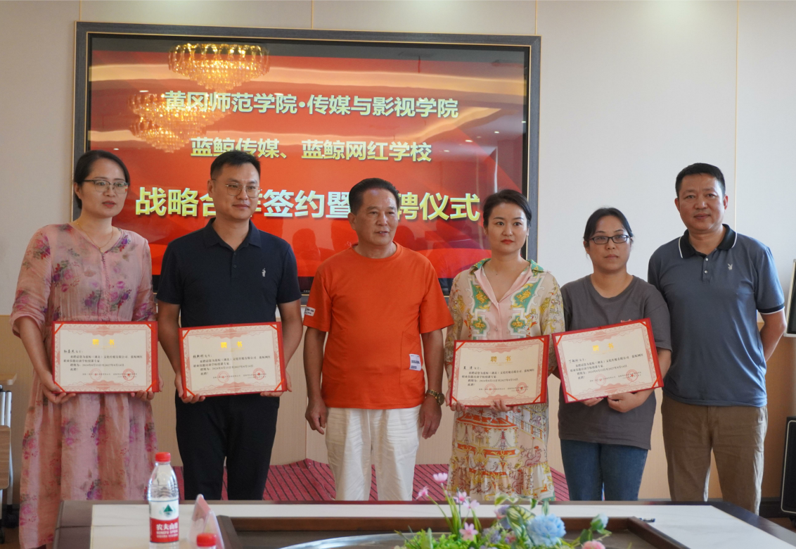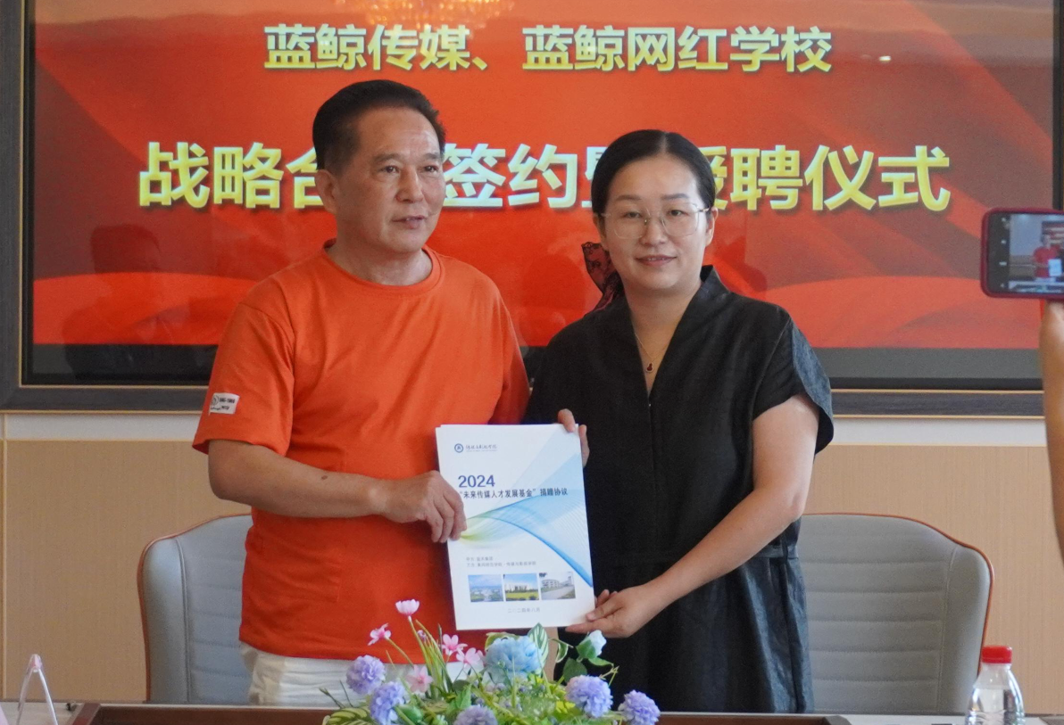 陈利与陈勇代表双方签订了“校企战略合作协议书”,陈利与张方旺代表双方签订了“未来传媒人才发展基金”捐赠协议。随后,陈利为蓝鲸传媒的七位资深行业专家颁发实习见习指导教师的聘书,张方旺、陈勇为公司四位专业老师颁发授课专家聘书。