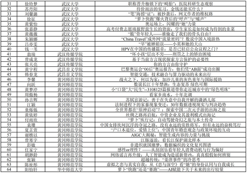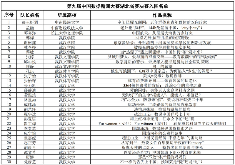 第九届中国数据新闻大赛湖北省赛决赛入围名单公示