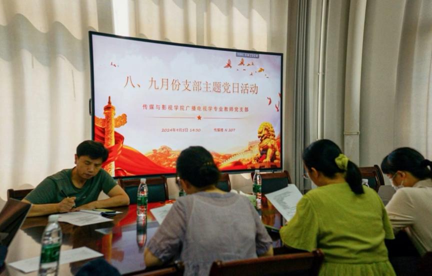 2024年9月5日下午,广播电视学专业教师党支部在传媒楼N207会议室召开了“激励爱国热情、凝聚奋进力量”为主题的支部主题党日活动。全体支部党员参与了学习和研讨。