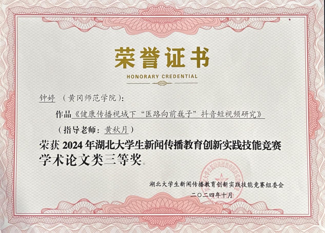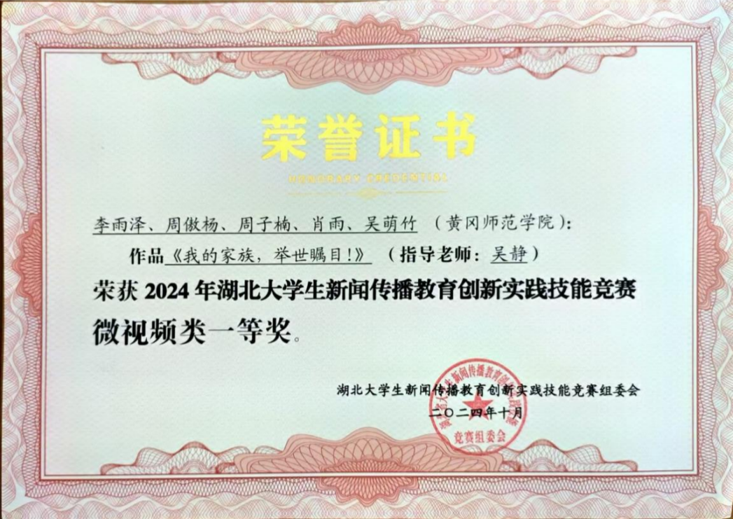 会议举行了2024新闻传播教育创新实践技能竞赛颁奖仪式,公司学子在此次比赛中取得了两个一等奖、一个二等奖和一个三等奖的佳绩。李雨泽、周傲杨等同学的作品《我的家族,举世瞩目》成功运用AI动画、说唱等现代元素讲述黄冈名人毕昇发明活字印刷的故事。
