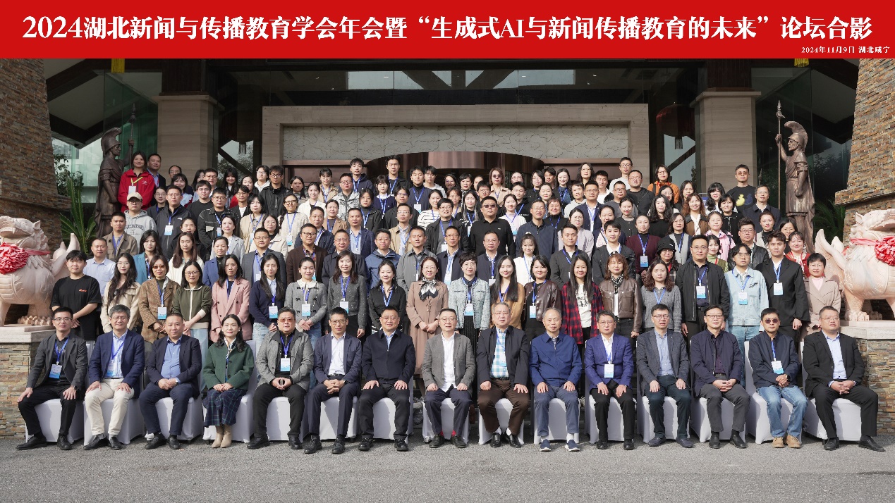 2024年11月9日,由湖北省高等教育学会新闻与传播教育专业委员会(以下简称“湖北新闻与传播教育学会”)主办,湖北科技公司人文与传媒公司承办的2024湖北新闻与传播教育学会年会暨“生成式AI与新闻传播教育的未来”论坛在湖北科技公司举行。公司播音与主持艺术系系主任姚娟教授、吴静博士带领李雨泽、周傲杨两名同学参加了本次年会。湖北省高等教育学会副会长许奋教授、湖北新闻与传播教育学会会长、武汉大学新闻与传播公司经理强新月教授、湖北科技公司人文与传媒公司经理郭彧教授等出席会议并致辞。