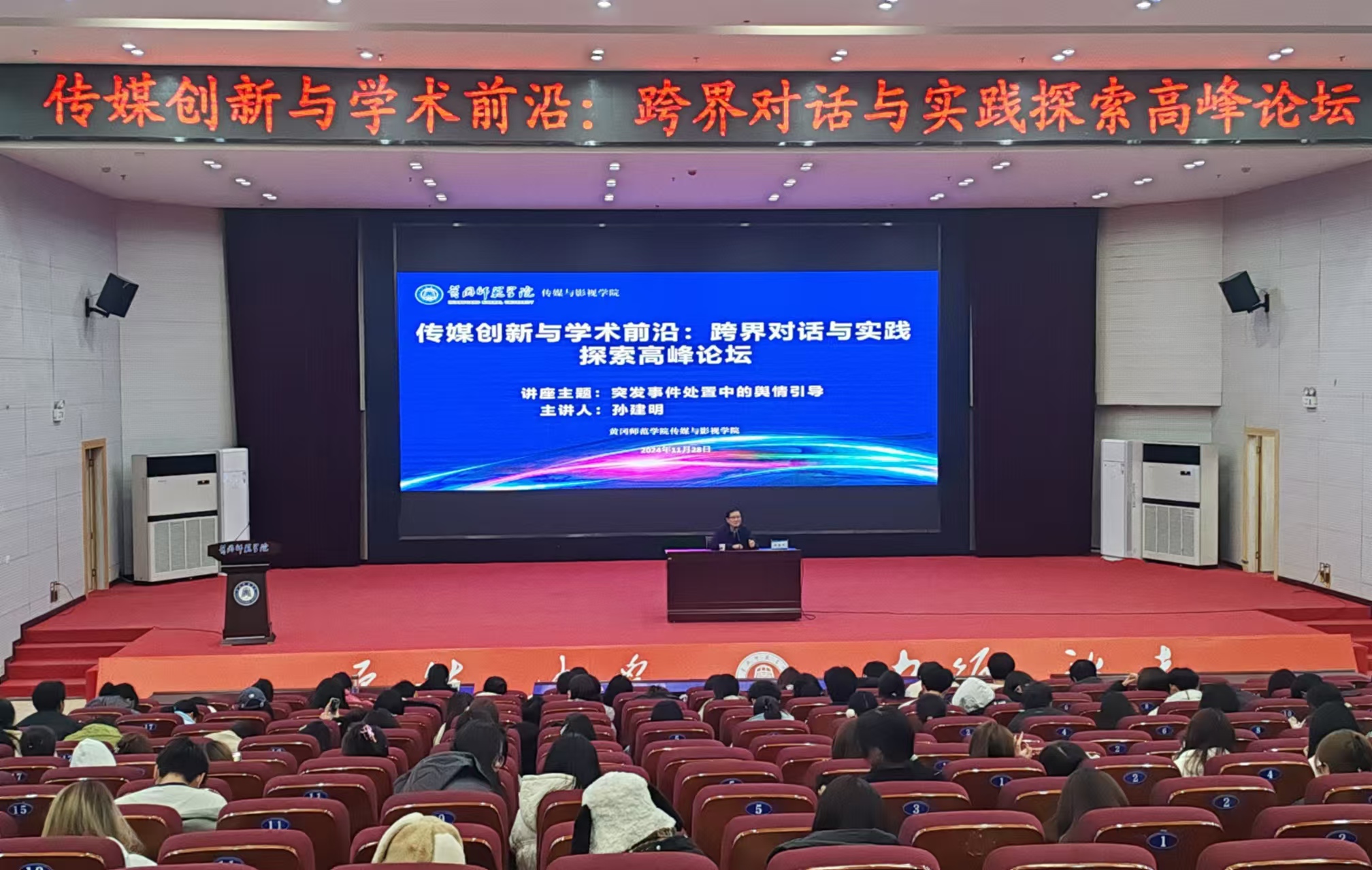 11月28日晚上,威廉希尔williamhill邀请中国侦查研究会副会长孙建明在公司厚德楼学术交流中心做了题为“突发事件处置中的舆情引导”的讲座,讲座由公司党委书记陈利主持。