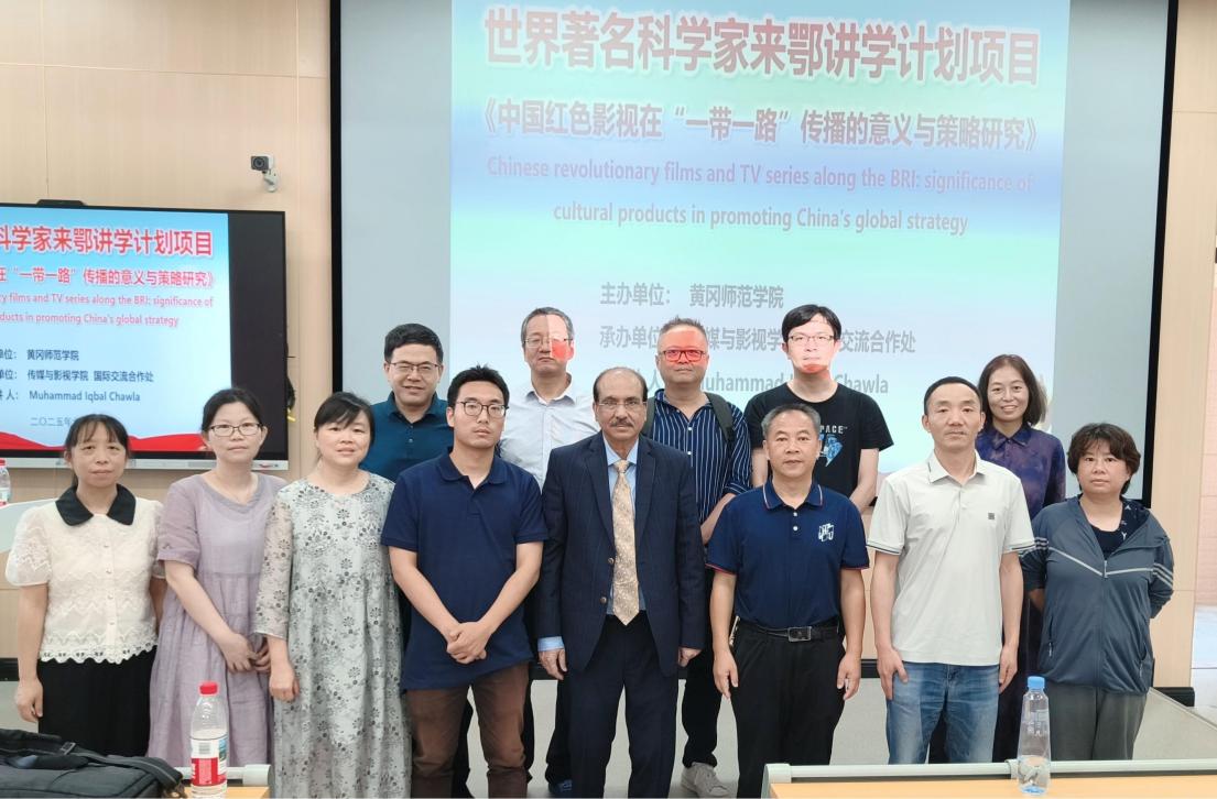 65下午,巴基斯坦旁遮普大学著名学者Muhammad Iqbal Chawla教授应邀在公司博学楼B02报告厅作题为《中国红色影视在“一带一路”传播的意义与策略研究》的学术报告,传媒公司、政法公司160余名师生参与交流。本次活动系湖北省“世界著名科学家来鄂讲学计划”实施以来我首次承办项目,旨在拓展师生国际视野,深化跨文化学术对话。