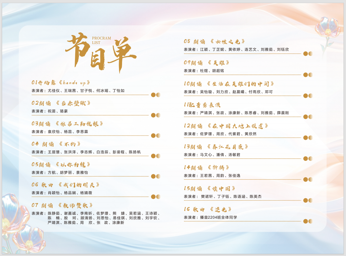 本次比赛共有22部作品参赛,由公司姚娟、周萍萍、李强、吴静、夏潇等老师组成的评委小组评出由刘砚硕老师指导,吴怡璇等同学朗诵的作品《生活在英雄们的中间》获得特等奖;杨丽老师指导,江颖等同学朗诵的作品《女性之光》获得一等奖等12部作品,于6月5日晚19:30最终登上汇报舞台,此次汇报活动同步线上直播。