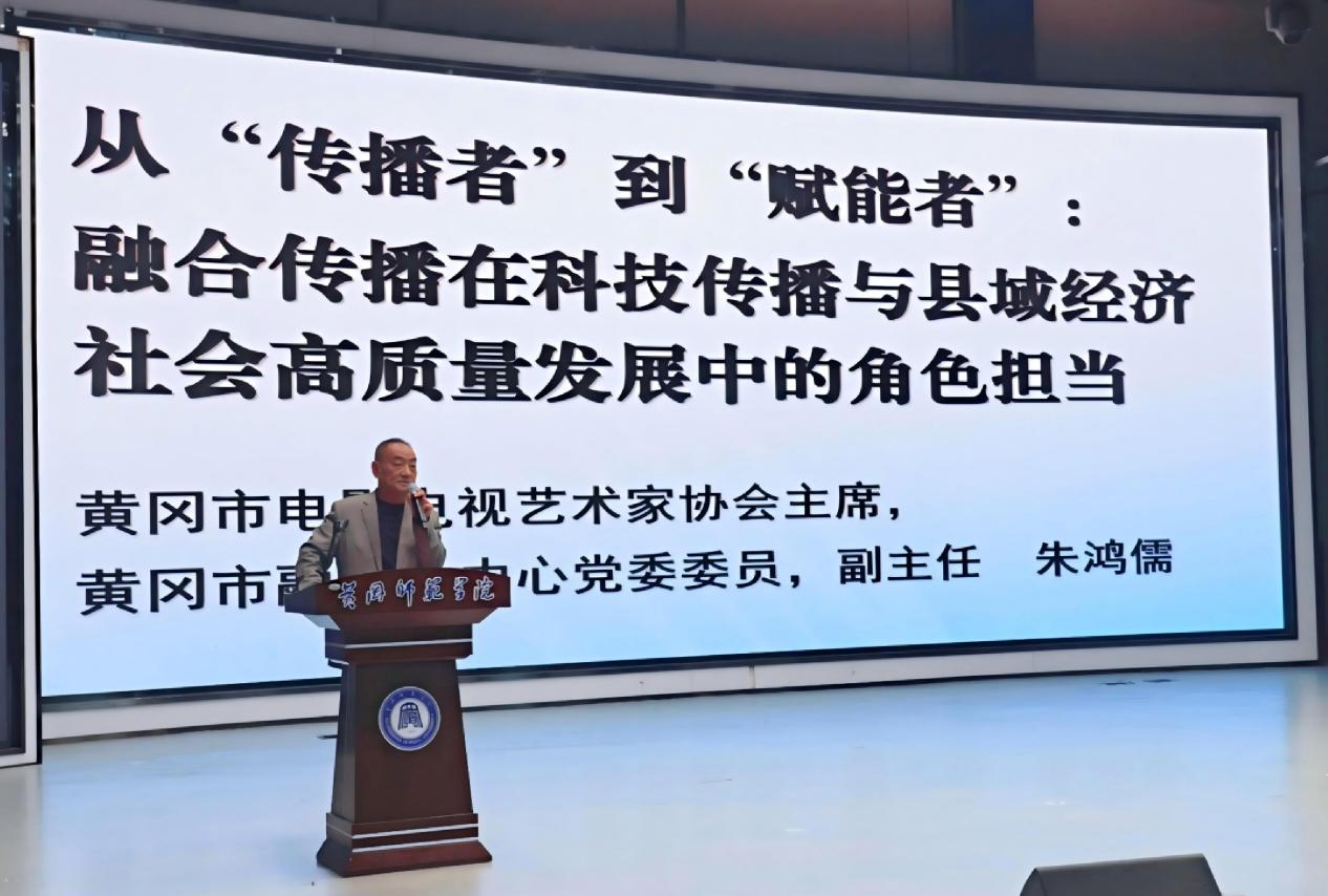 黄冈市电影电视艺术家协会主席,黄冈市融媒体中心党委委员,副主任朱鸿儒,以“从‘传播者’到‘赋能者’:融合传播在科技传播与县域经济社会高质量发展中的角色担当”为主题,系统梳理了市县媒体融合传播困境。他从新闻服务等层面,提出了黄冈市县融媒体中心构建的“新闻+政务+服务+商务”融合模式,媒体角色转型黄冈路径。